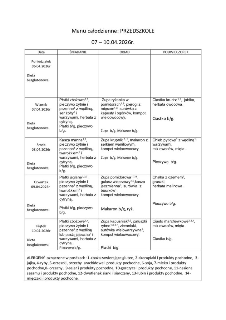 Ramowy rozkład dnia