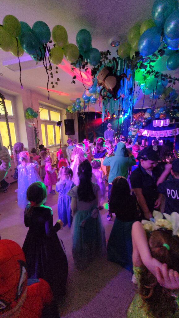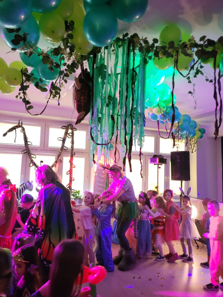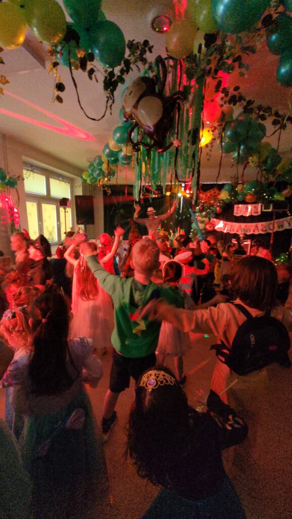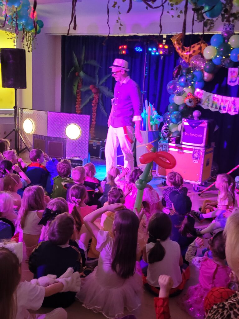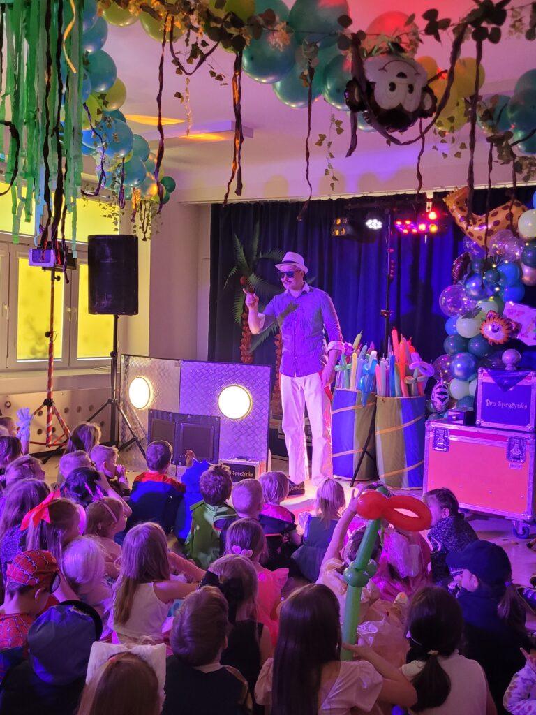 W wir tej radosnej symfonii barw i dźwięków zabrał dzieci niezrównany Pan Sprężynka ze Studia Artystyczno-Edukacyjnego Bąbel-Ziombel — mistrz dziecięcej wyobraźni i niespożytej energii, który od pierwszej chwili z niezwykłą lekkością porwał wszystkich do wspólnej zabawy. Było głośno, radośnie i bez chwili wytchnienia — nieprzerwany taniec, salwy śmiechu, spontaniczne okrzyki i burze braw szczelnie wypełniły balową salę.